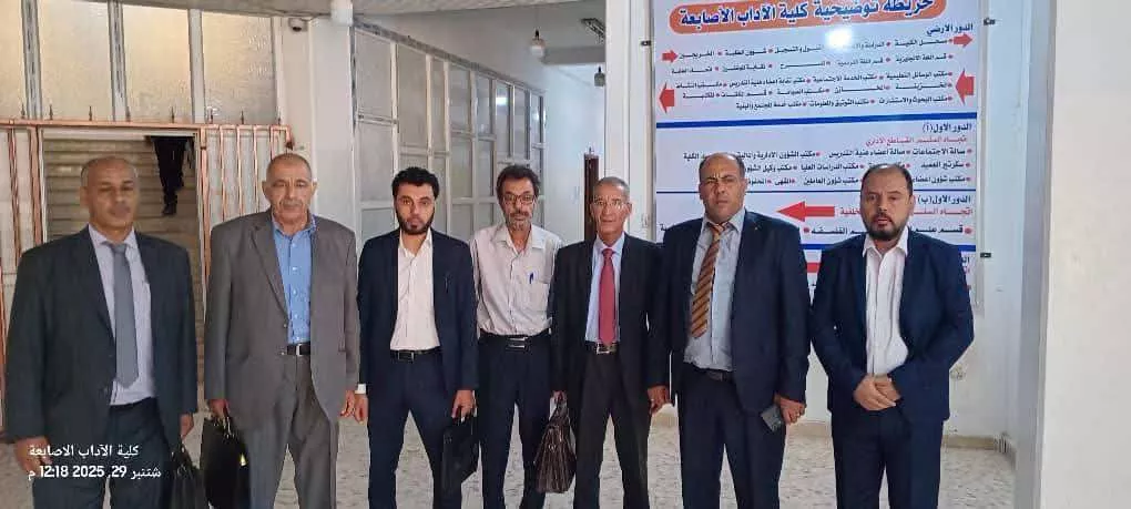 زار اليوم الإثنين الموافق 29 / 9 / 2025 م فريق التدقيق من المركز الوطني لضمان جودة واعتماد المؤسسات التعليمية والتدريبية، كلية الآداب لغرض الحصول على الترخيص الفني لبرامج الدراسات العليا (الماجستير) لقسم الجغرافيا، كان في استقبال الفريق السيد عميد الكلية، والسيد وكيل الشؤون العلمية بالكلية، والسيد مدير مكتب الجودة وتقييم الأداء بالجامعة، والسيد مدير مكتب الجودة بالكلية، والسيد مدير مكتب الدراسات العليا بالكلية، والسيد رئيس قسم الجغرافيا، ومنسقو الدراسات العليا ، وعدد من أعضاء هيأة التدريس، وفي ختام الزيارة اجتمع الفريق في مكتب عميد الكلية مع السيد رئيس الجامعة، وقد ألقيت عدد من الكلمات التي نوهت على ضرورة استمرار العمل وبذل الجهد رفعة للعملية التعليمية.وتم تقديم الشكر والامتنان للفريق الزائر .