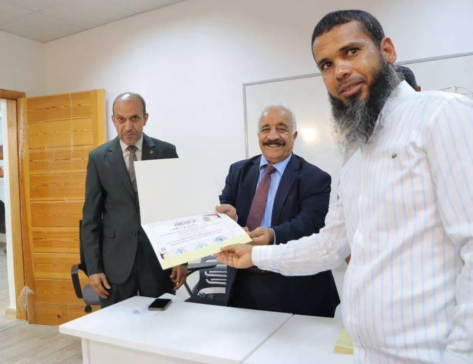 تخلل الحفل توزيع شهادات المشاركة على المتدربين وتكريم الدكتور شعبان امحمد فضل بمنحه شهادة شكر وتقدير ودرع الجامعة تقديراً لجهوده المتميزة في تقديم الورشة وتحقيق أهدافها.