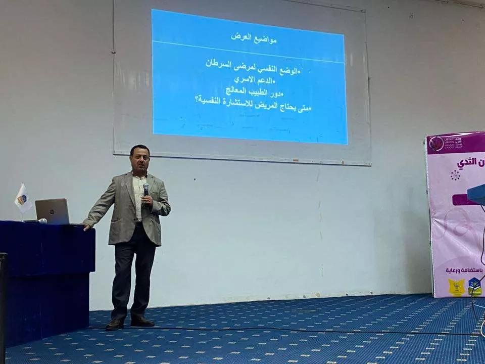 والثانية حول الدعم النفسي لمريض السرطان للدكتور الهاشمي حسين الفقي عضو هيئة تدريس بكلية الطب البشري